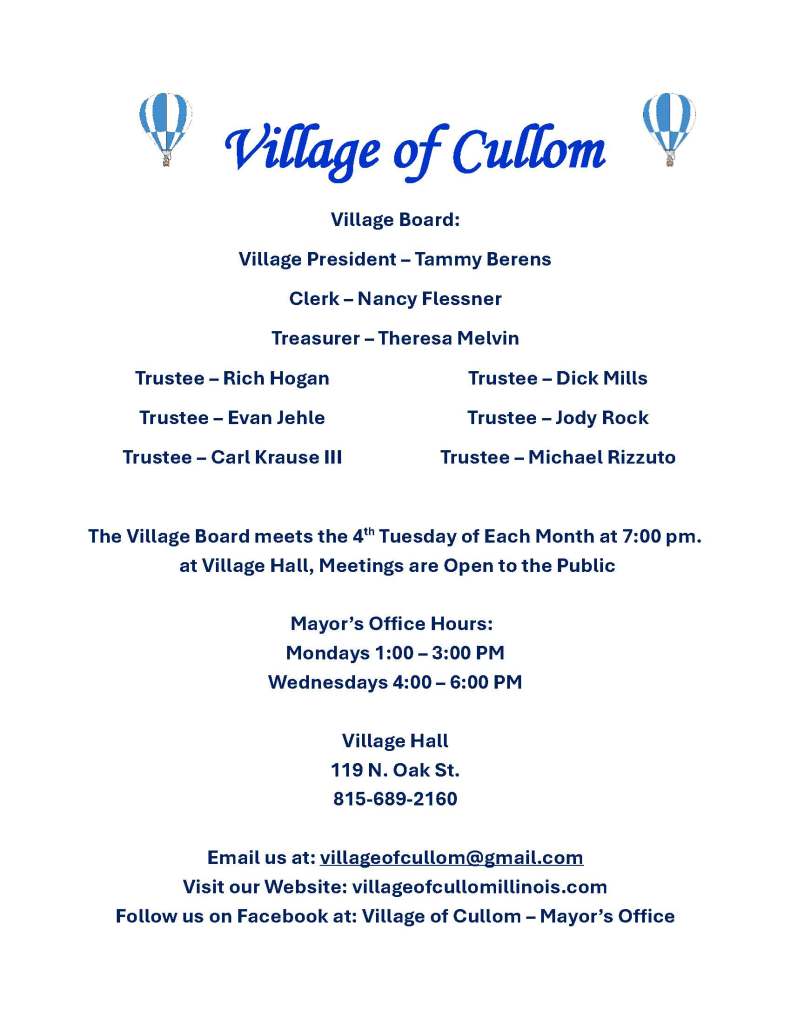 Village Hall 119 N. Oak St. Cullom Illinois 60929